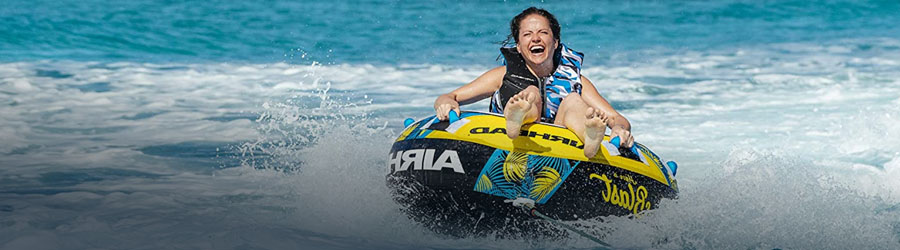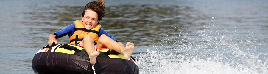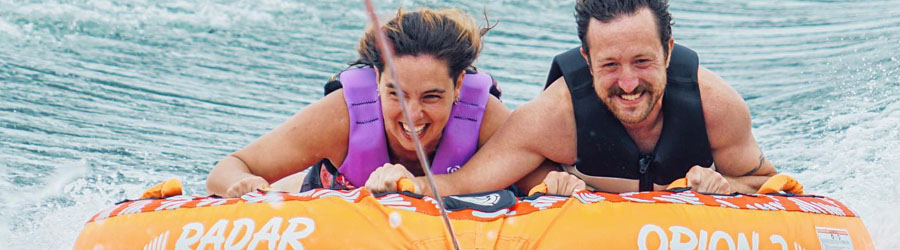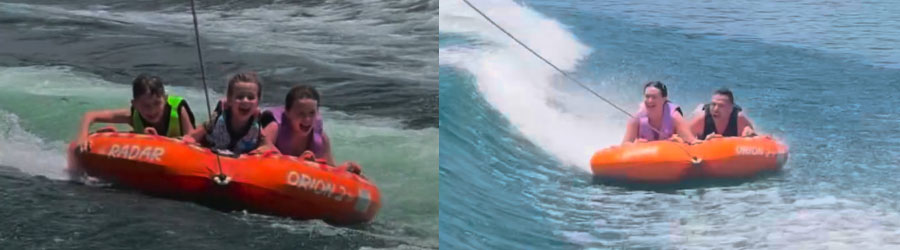 Niños: Las llantas flotantes son una actividad divertida y segura para todas las edades. Sin embargo, debe tener la fuerza necesaria para sujetar la cuerda del remolque, la edad mínima recomendada es de 6 años y se requiere tener conocimientos básicos de natación. Los niños pueden subirse con sus padres.