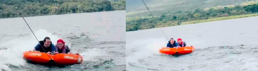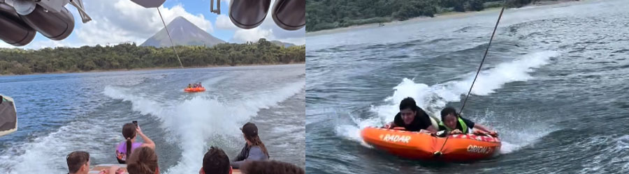 Sugerencias: Si busca algo divertido para toda la familia, incluso si a uno o dos les da un poco de miedo meterse al agua, flotar en el Lago Arenal es una excelente manera de pasar el día en La Fortuna. Si no quiere pasear en las llantas flotantes, puede acompañarnos y convertirse en paparazzi. Créanos, ver a sus amigos y familiares brincar detrás del bote es un entretenimiento que debería quedar grabado y guardado en el archivo familiar para que las futuras generaciones se rían.