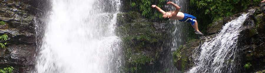 Nota: Esta caminata esta calificada por el operador como "No apta para timidos", por favor llámenos si está considerando traer niños, para poder asesorarlo si esta excursión es recomendada para ellos. Si tiene niños pequeños y está muy interesado en la parte del "Salto desde la Cascada", le recomendamos que tome la "Excursión de Salto desde una Cascada". Los Pasajeros de Crucero deberán trasladarse a la oficina principal de Costa Rica Waterfall Tours en Jaco.