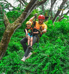 Reúna a toda la familia y únase a los monos aulladores que se balancean entre los árboles en la Excursión de Tirolesa Skyline en Tamarindo. Pero no se trata solo de tirolesas, la Excursión de Tirolesa Skyline también incluye un puente colgante, un puente tibetano, una escalera de caracol que envuelve un árbol gigante de Guanacaste, ¡e incluso un columpio Tarzán! Con arneses lo suficientemente pequeños para asegurar a niños de hasta 2 años.