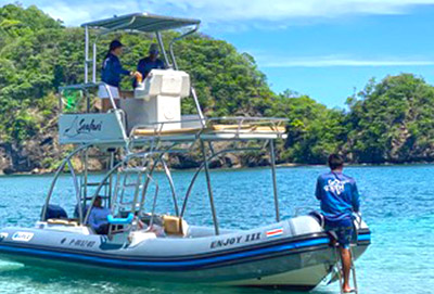 We have 5 different boats to choose from for all travel styles and budgets. Our smaller adventure boats hold between 6 to 8 pax and are perfect for Papagayo Dolphin & Whale Watching excursions. Just click on the tabs below for a little more info about each boat. If you are searching for whale watching trip on a larger yacht, take a look at our Family Fun Day on the Ocean & Beach Break Options.