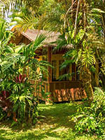 Hotel Services: 14 cozy bungalows nestled in the stunning jungle setting, featuring orthopedic queen and single beds, ceiling fans, built in closet, bathroom with solar hot water and a private terrace. Some are equipped with A/C. One bungalow features two bedrooms to accommodate up to 7 people while the rest accommodate up to 4 people.