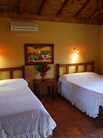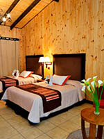 Hotel Services: 21 cabin style rooms, each equipped with two double beds, private bathroom with hot water, A/C, cable TV, mini fridge and views of the volcano.